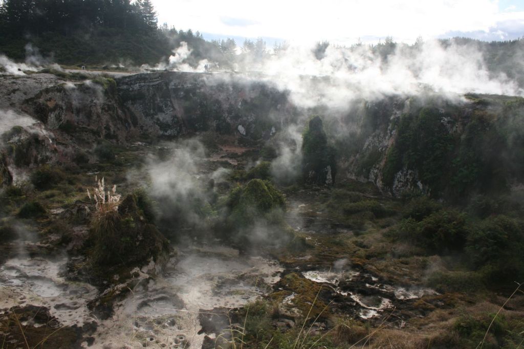 Premier stop à Rotorua, car mes deux compagnons de route n’ont pas vu la ville. On y reste deux nuits, mais malheureusement, il pleut toute la journée.